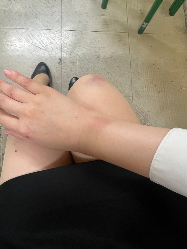 保護室に移される直前、山地という警官が私を殴り、蹴り、押さえつけてきた。腕や手首、足に強い痛みを感じる。
